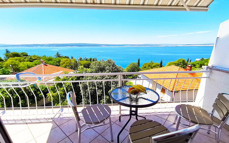 erkély, zuhanyzós fürdőszoba, légkondícionált, tengerre néző, apartman, 1. emeleti