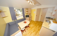4-6 fősek (kb. 24 m2) GOLD típus: légkondicionáltak; tv, két kétágyas szoba (az egyikben franciaágy, a másikban két különálló ágy), a nappaliban kinyitható kanapé (két 12 év alatti gyermek részére), felszerelt konyhasarok (mikrohullámú sütő), zuhanyzó; fedett terasz kerti bútorral; max. kapacitás 4 felnőtt és 2 gyermek 12 éves korig